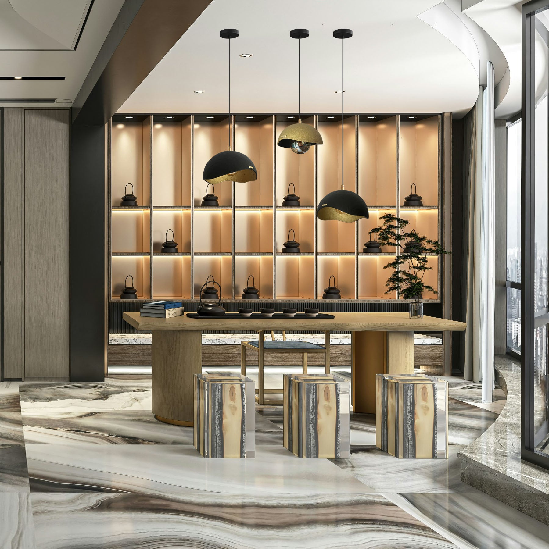 Ručno modelirana betonska sjenila i plafonjere iz linije ‘Lunar’ skulpturalni su objekti inspirirani prirodnom i dinamikom refleksije nebeskih tijela, te su primjer funkcionalnog dizajna koji brine o prirodi raspršenja svjetlosti.