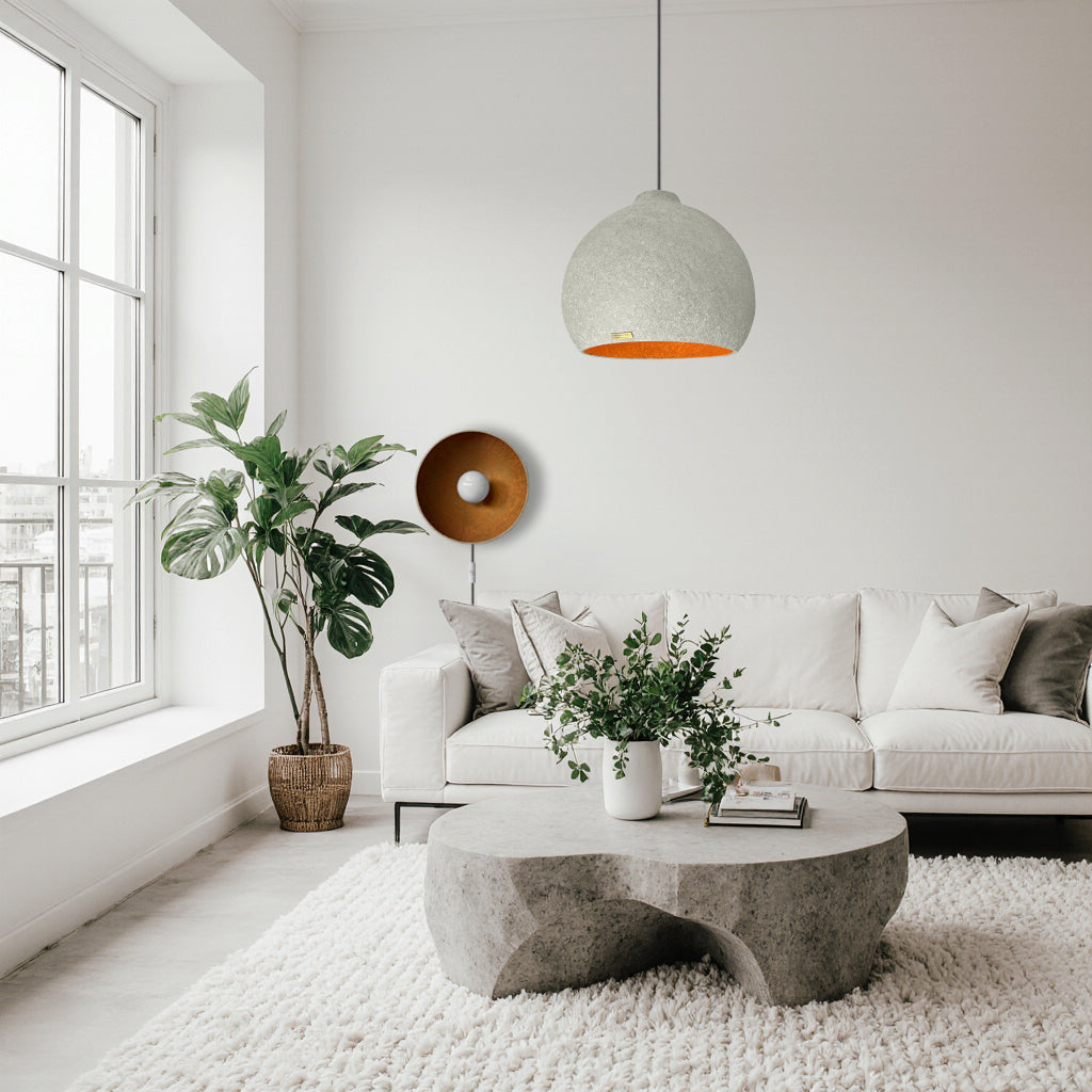 The Capsule pendant is handcrafted from lightweight concrete with a natural texture and soft semi matte finish.