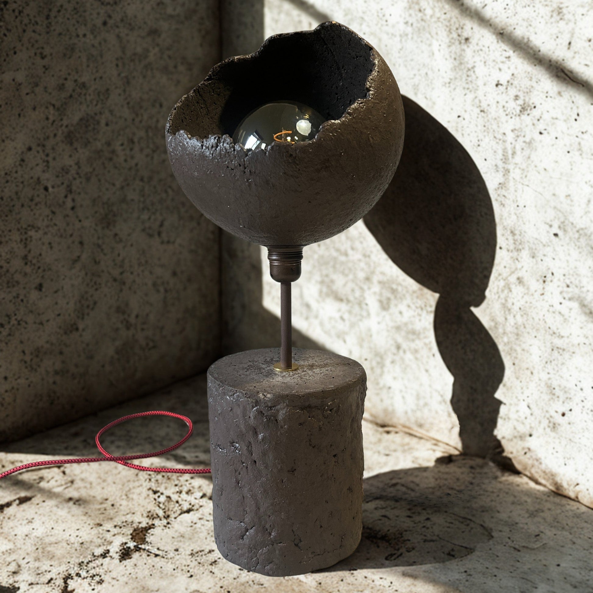 Stolna lampa Objekt13 utjelovljuje skulpturalni karakter i tihu snagu One of One kolekcije. Izrađena od betona, čvrsto postolje nosi unikatno ručno modelirano sjenilo. Svako sjenilo posebno je oblikovano za svoje postolje i zadržava sirov, neobrađen rub koji naglašava taktilnost i autentičnost materijala.